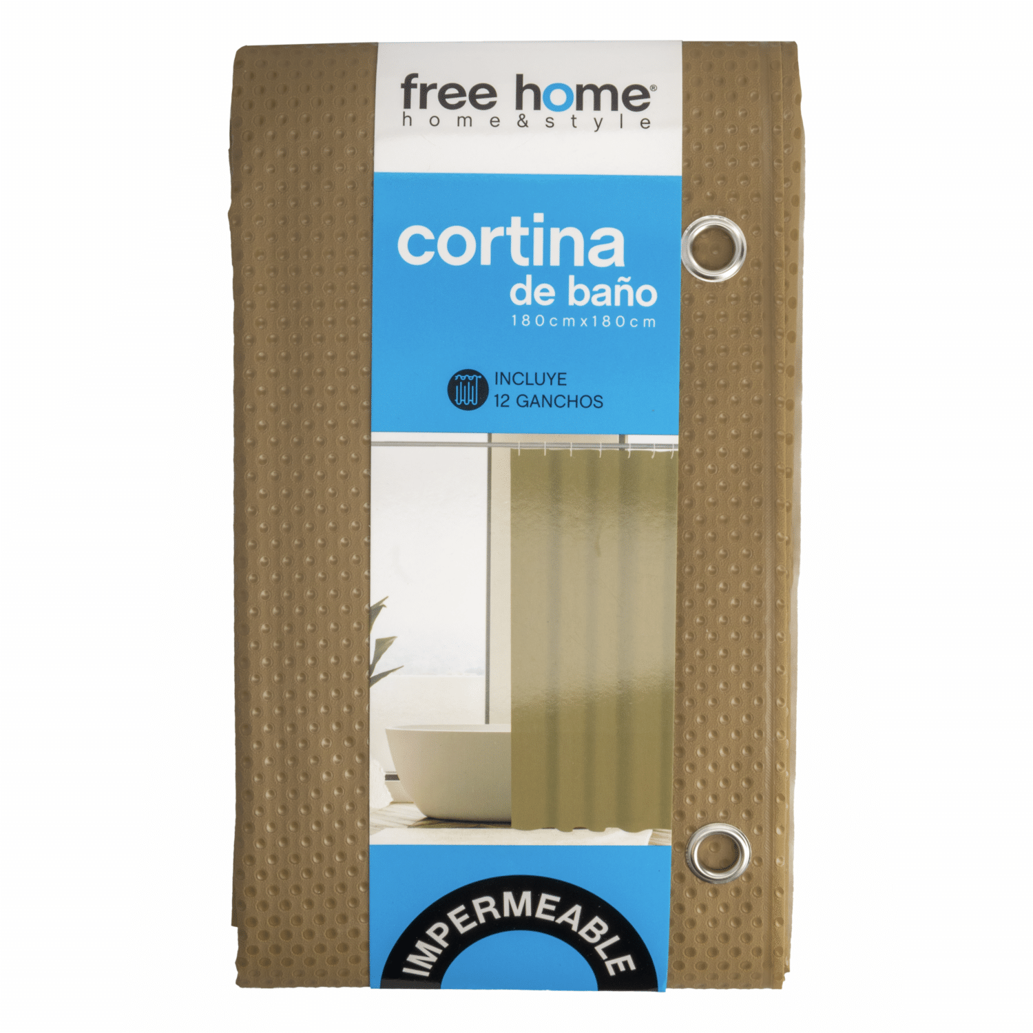 Cortina de baño FREE HOME, ideal para mantener tu baño seco y con estilo moderno y práctico. Características - Material resistente y duradero - Medidas 180x180 cm - Incluye aros para fácil instalación - Diseño elegante y funcional - Protege el área de la ducha del agua