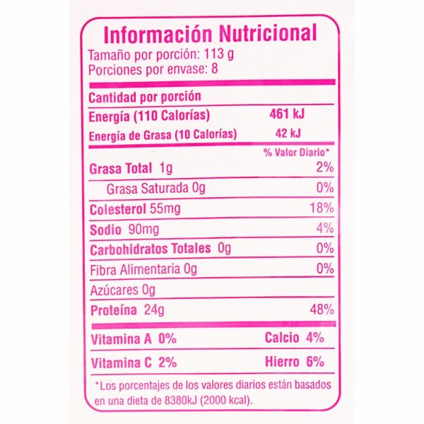 • Se puede preparar de diversas formas, como a la parrilla, al horno o en ceviche. Es un producto fresco y de origen marino, lo que garantiza su frescura y calidad. Su textura firme y suave la hace perfecta para platos gourmet y de alta cocina