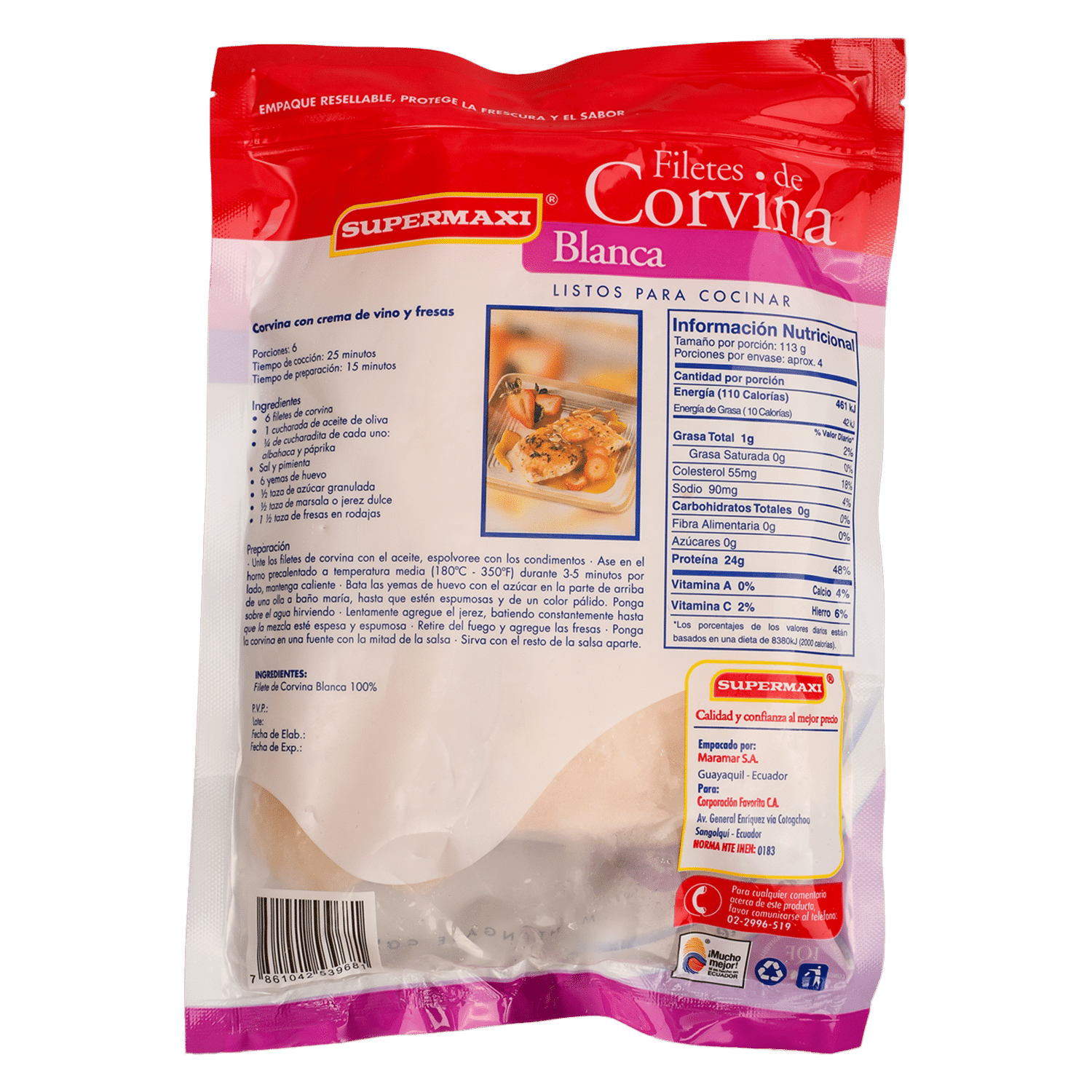 Corvina Blanca SUPERMAXI 454g – SUPERMAXI. Disponible en nuestros locales. Precio y stock pueden variar según la tienda.