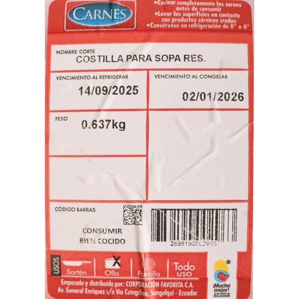 Corte de carne ideal para preparar en sopa, son de alta calidad, jugoso y delicioso