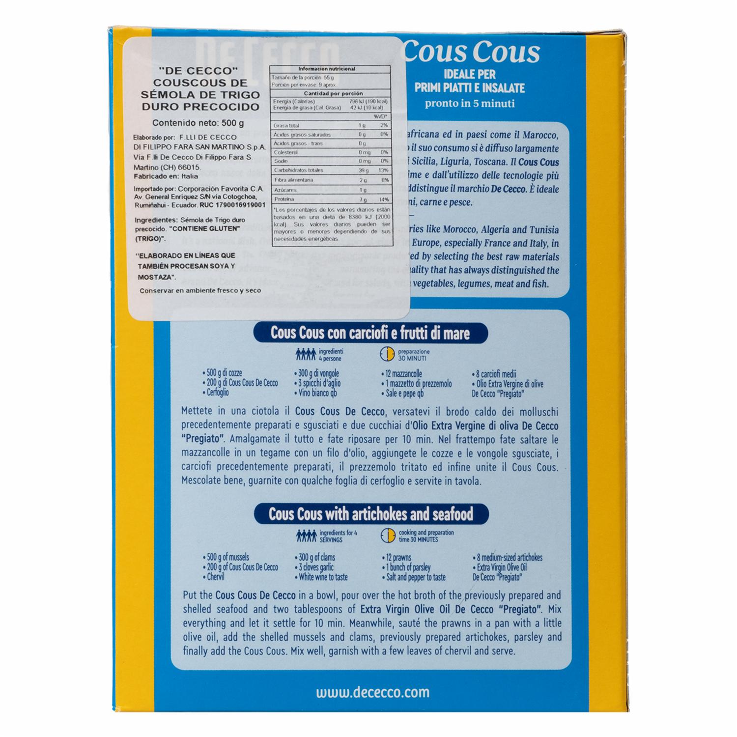 Cous Cous De Sémola De Trigo Duro DE CECCO 500 G