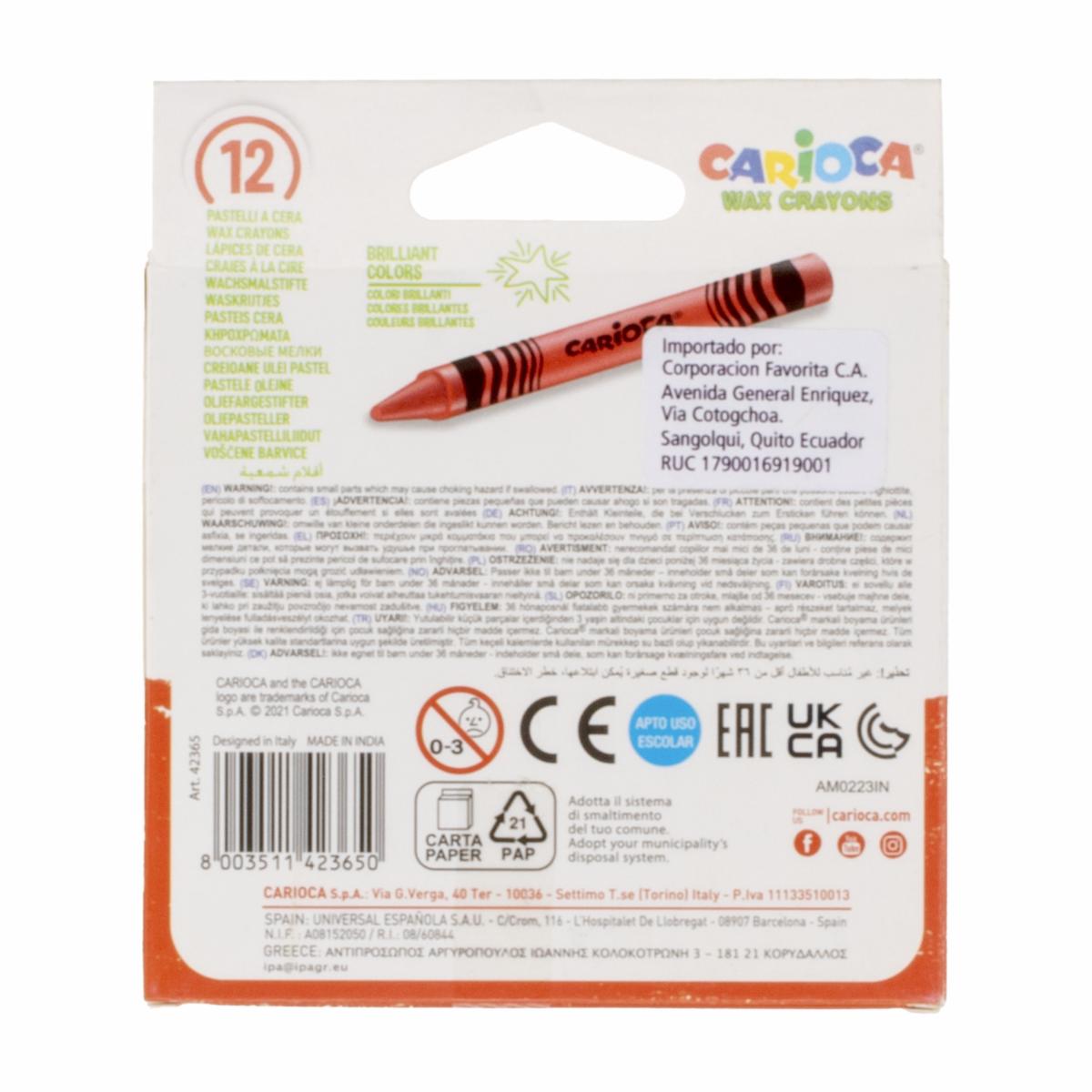 consultando preciosCrayones Wax CARIOCA 1×12 Uds – CARIOCA. Disponible en nuestros locales. Precio y stock pueden variar según la tienda.