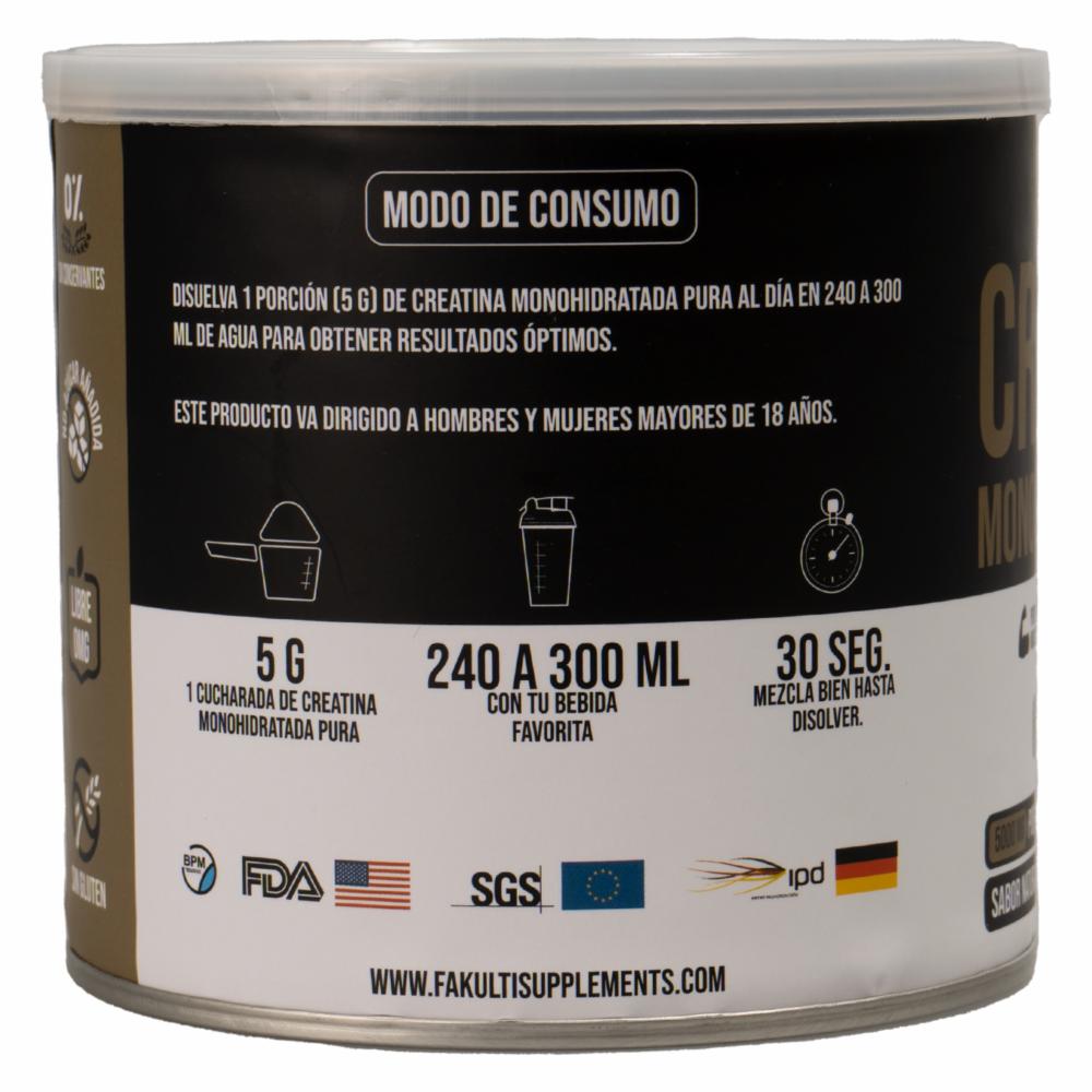 Maximiza tu energía y potencia con la creatina monohidratada pura de FAKULTI, formulada para ofrecerte la mejor calidad sin ingredientes extras. Perfecta para quienes buscan mejorar su rendimiento, aumentar masa muscular y acelerar la recuperación después del entrenamiento. Su presentación de 200 g es ideal para uso diario, fácil de mezclar y llevar a cualquier lugar