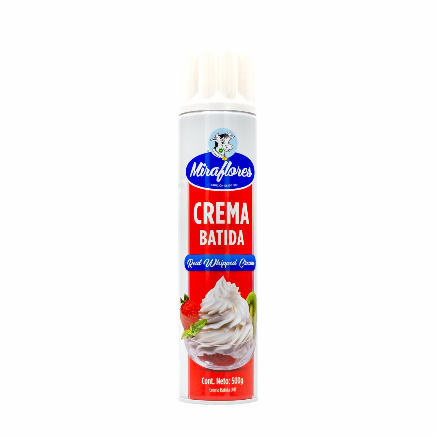 consultando preciosCrema Batida Spray MIRAFLORES 500 G. Disponible en nuestros locales. Precio y stock pueden variar según la tienda.