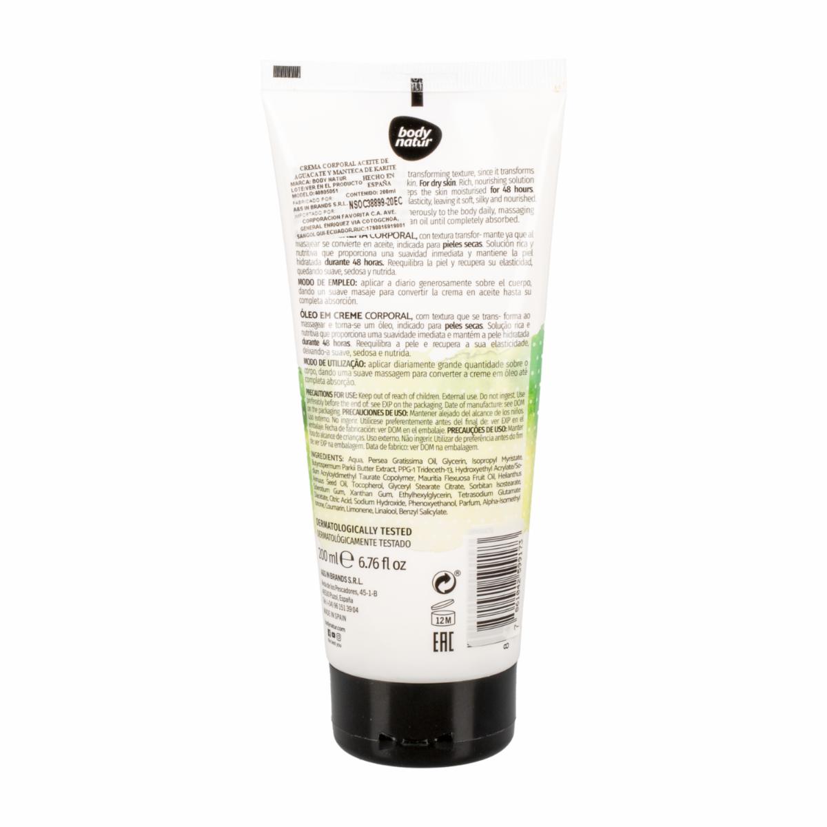 Crema Corporal Nutritiva Con Aceite De Aguacate BODY NATUR 200 Ml – BODY NATUR. Disponible en nuestros locales. Precio y stock pueden variar según la tienda.