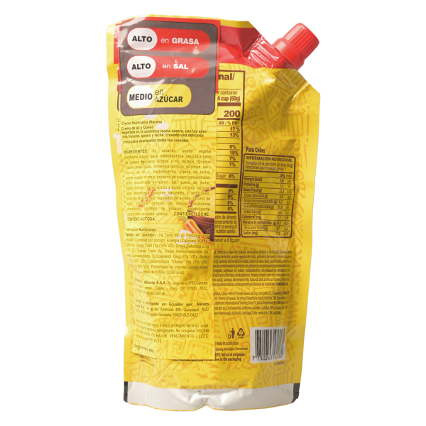 Disfruta del sabor auténtico de la cocina peruana con la crema de ají y queso Huancaína ALACENA. Perfecta para acompañar papas, verduras o tus platos favoritos, aporta un toque cremoso, picante y lleno de sabor. Dale a tus comidas ese sabor tradicional que encanta a toda la familia