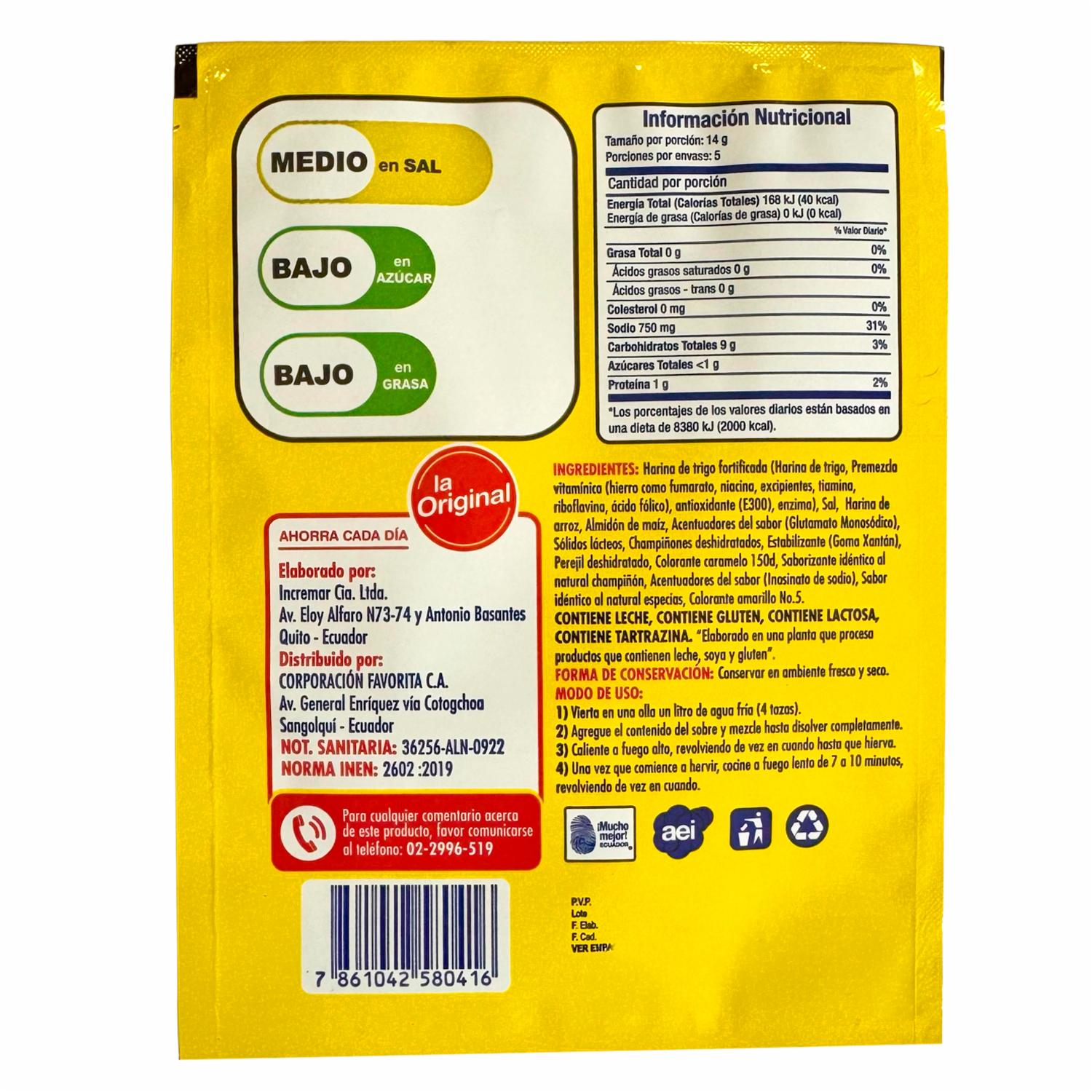 Presentación 70g, Rinde 5 porciones, listo en 7 min