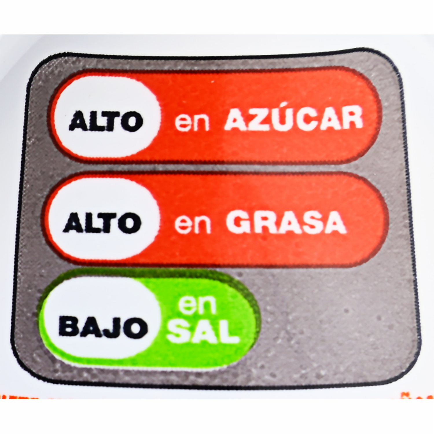 • Azúcar, grasa vegetal, leche descremada en polvo (12%), aceite vegetal, avellanas (6,5%), leche entera en polvo (5%), harinade trigo, cacao magro en polvo,,pasta de cacao, emulsionante: lecitina (soya), proteína del suero de leche, mantecade cacao, saborizante: vainillina: idéntico al natural, sal, leudante: bicarbonato de sodio