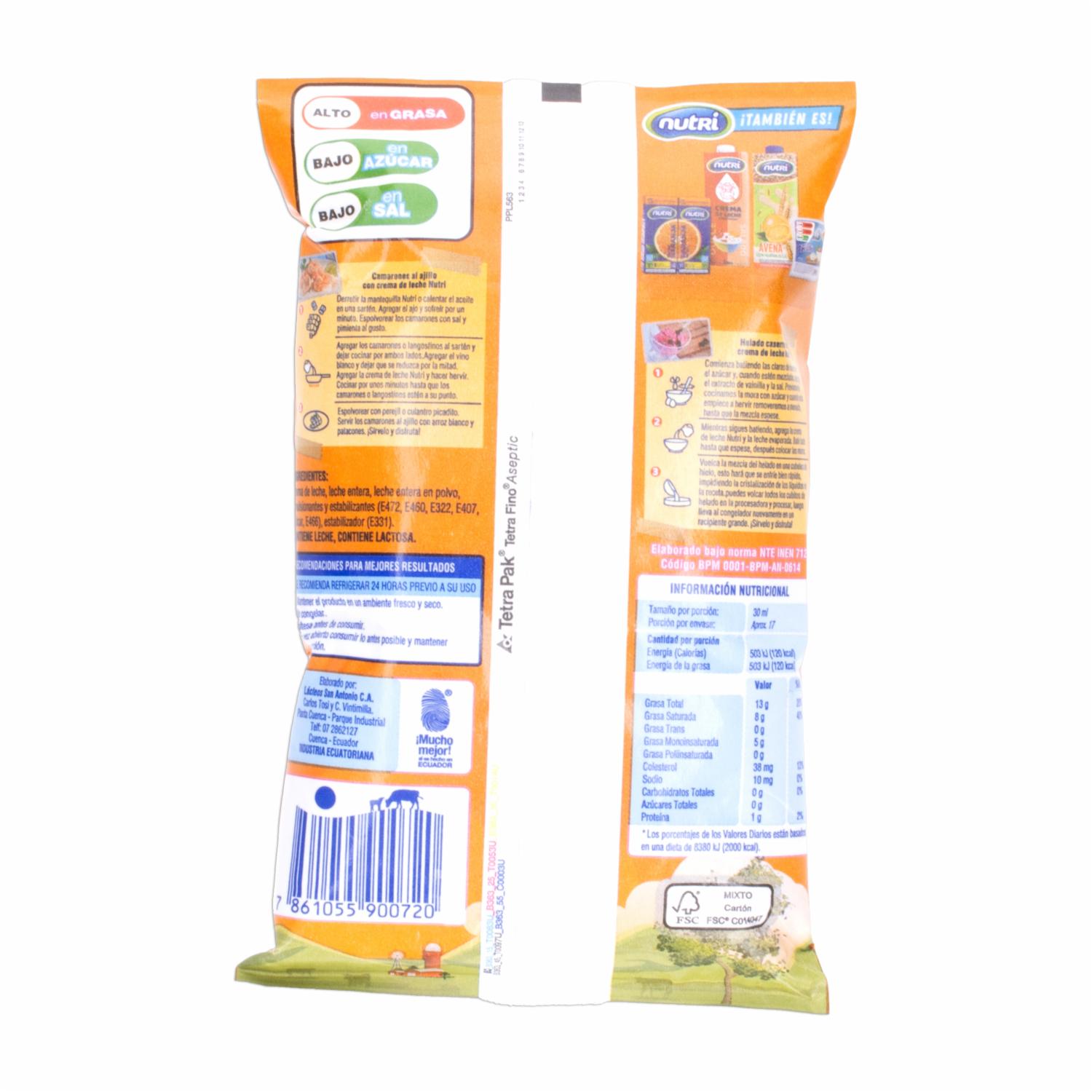 Crema De Leche Tetrafino NUTRI 500 Ml