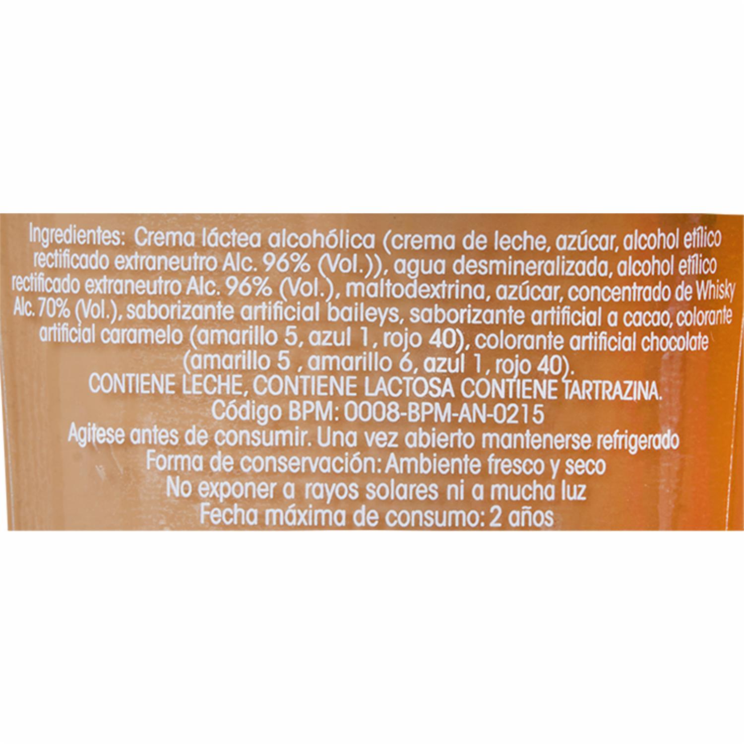 Una perfecta combinación que se caracteriza por su textura suave y cremosa de la crema de leche que junto con whisky, se fusiona de manera perfecta en el paladar, dando el buque perfecto