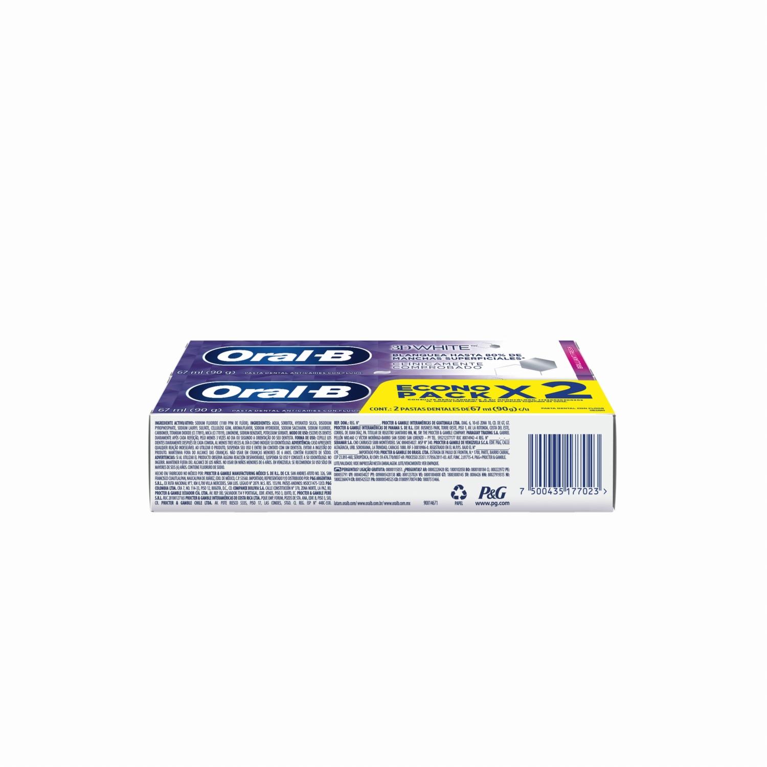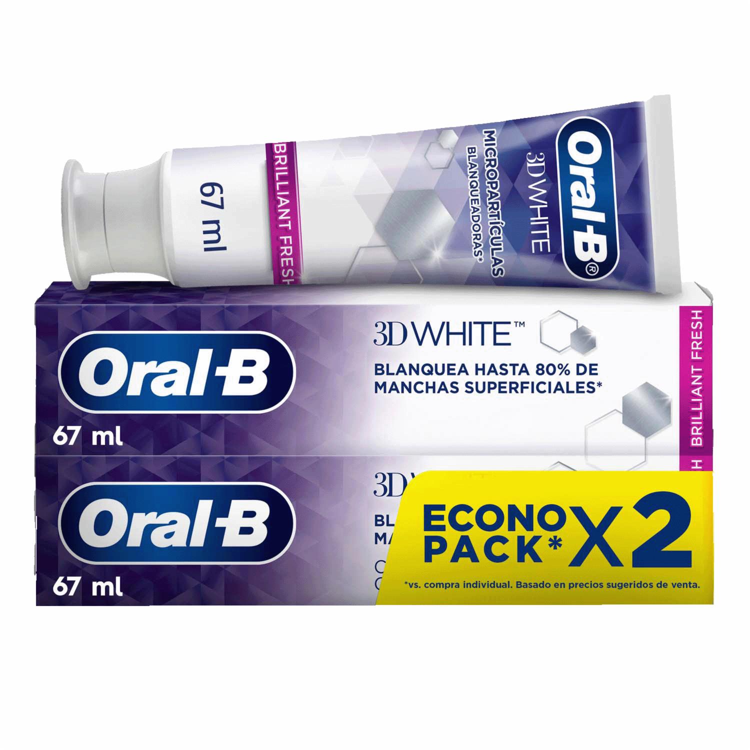 • Complemente tu rutina de cepillado con la Pasta de Dientes Oral-B 3D White Brilliant Fresh, que con micropartículas blanqueadoras patentadas, pule suavemente las manchas de la superficie. Esta Pasta Dental te ayuda a mantener una sonrisa más saludable. La Pasta Dental 3D White cuenta con espuma de acción que ayuda a limpiar zonas de difícil acceso, además, protege el esmalte y ayuda a prevenir la caries, remover la placa y refrescar el aliento
