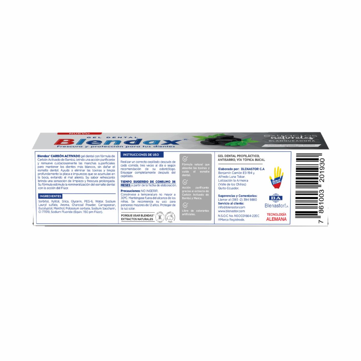 Crema Dental Extractos Naturales Bambú Con Carbón Activado BLENDAX 102 G