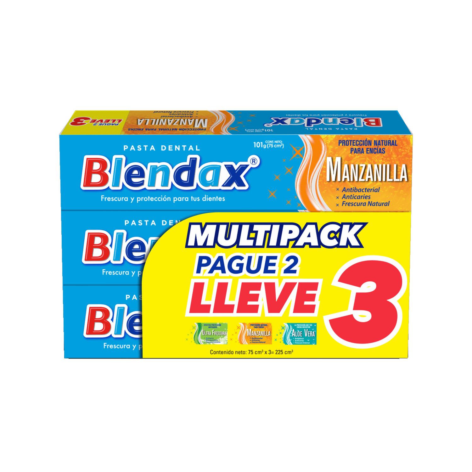 consultando preciosPasta Dental Manzanilla + Ultra Frescura + Aloe Vera BLENDAX Pack 2×3 – BLENDAX. Disponible en nuestros locales. Precio y stock pueden variar según la tienda.
