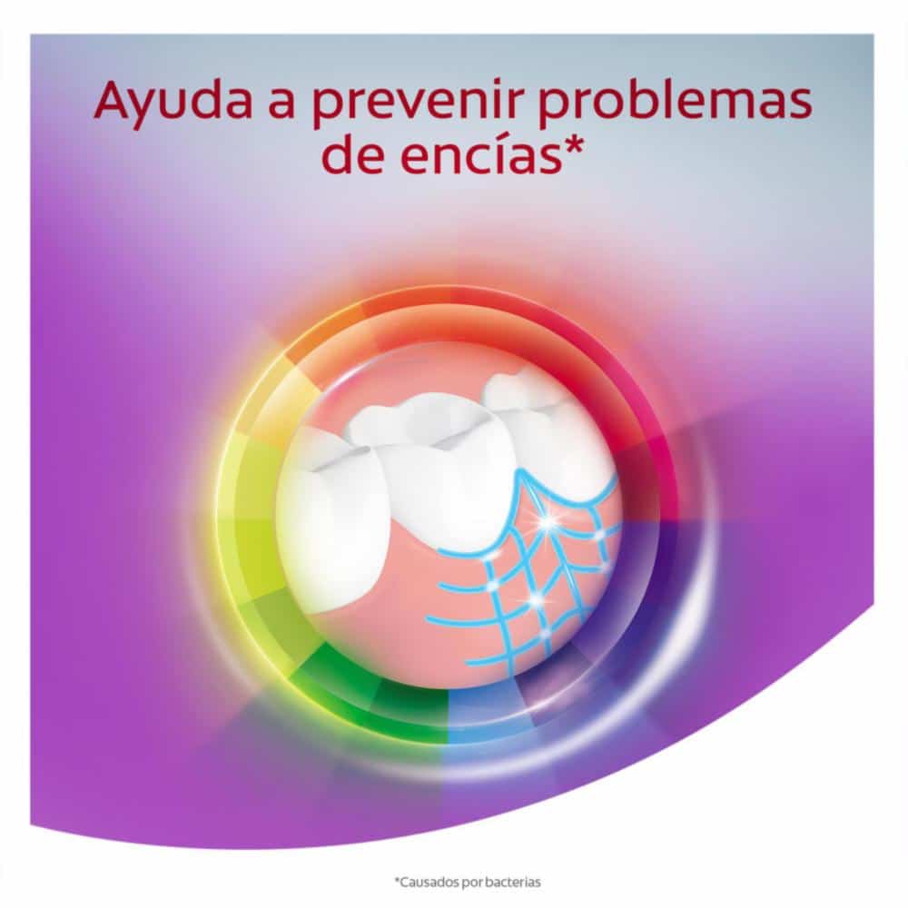 • Causados por bacterias. Combatiendo bacterias y mal aliento por hasta 12 horas con 4 semanas de uso continuo. ¹Vs crema dental regular con flúor sin ingrediente antibacterial