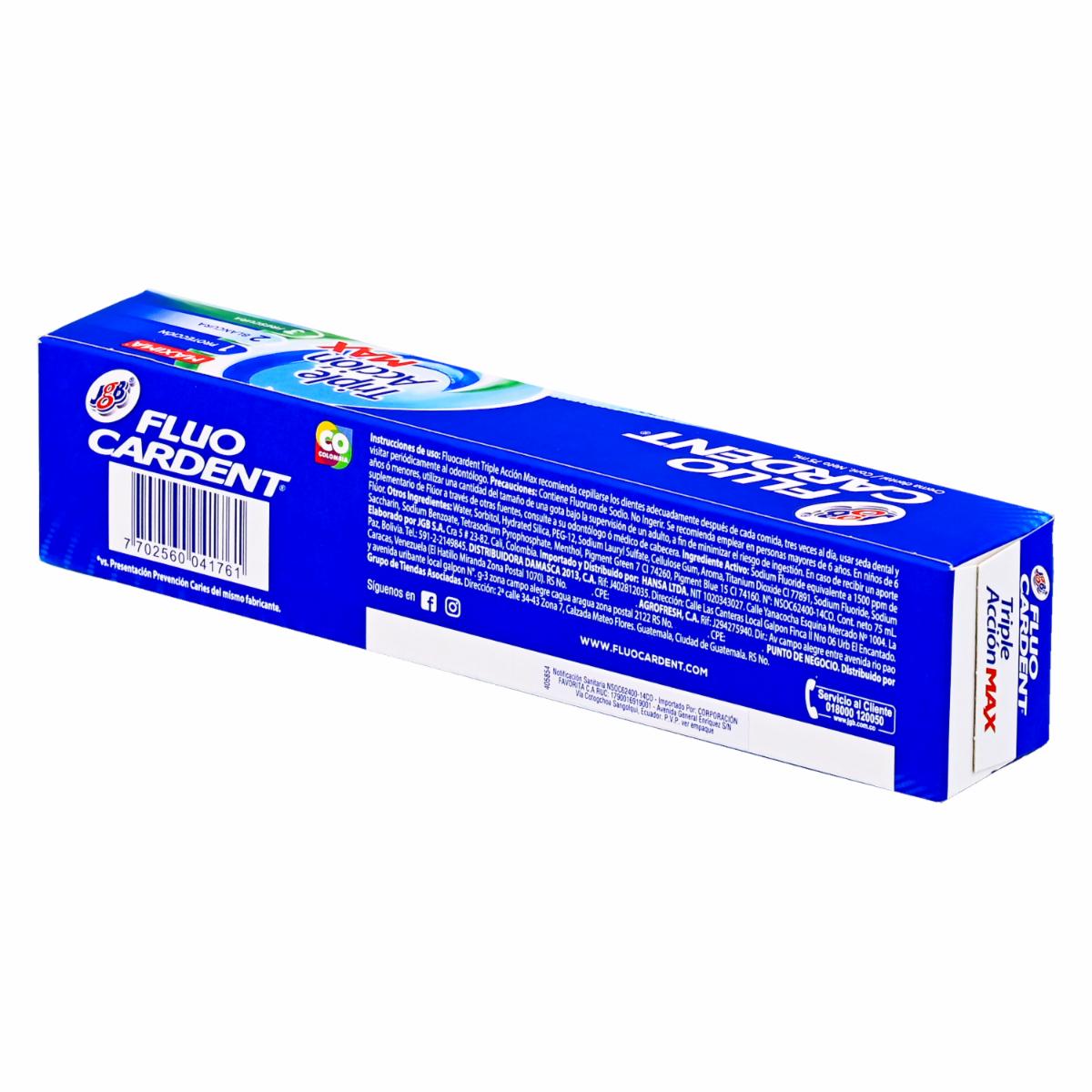 Pasta Dental Triple Acción Max FLUO CARDENT 75 Ml