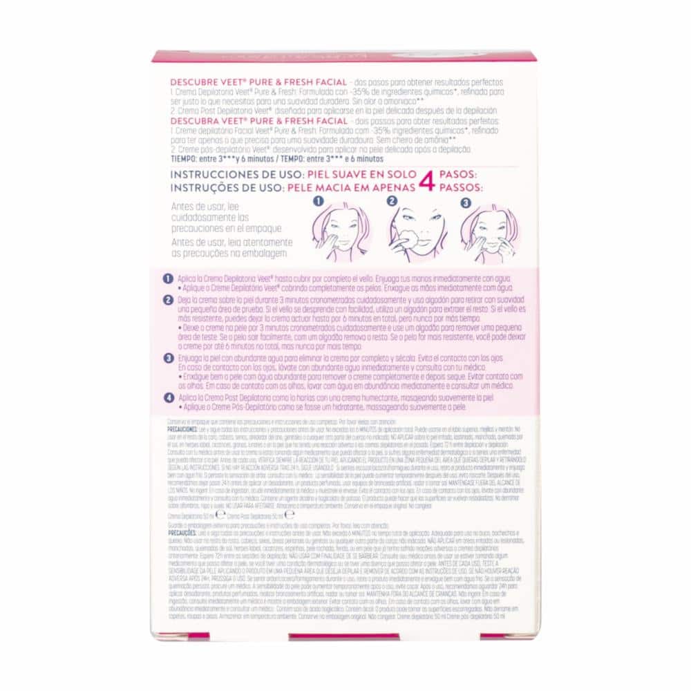 Crema Depiladora Facial Piel Normal Pure Y Fresh Kit VEET 100 Ml