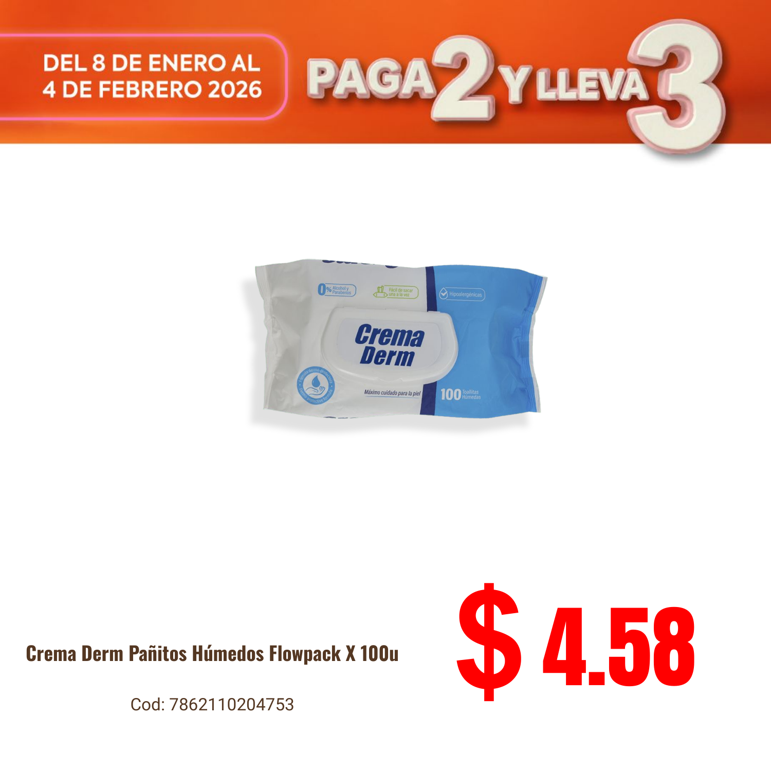 Crema Derm Pañitos Húmedos Flowpack X 100u