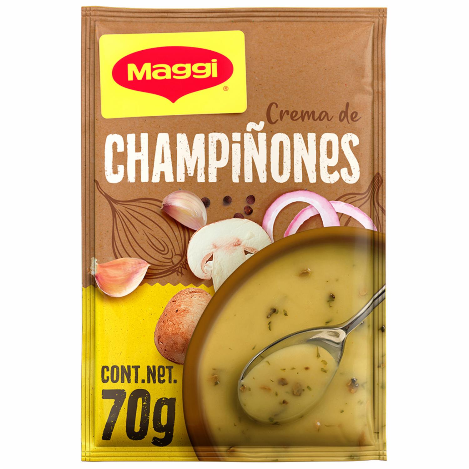 - Una opción fácil, deliciosa e ideal para cualquier ocasión, es la Crema de Champiñones MAGGI®, que te da ese sabor y consistencia única y cremosa en tu boca. ¡Pruébala ya!