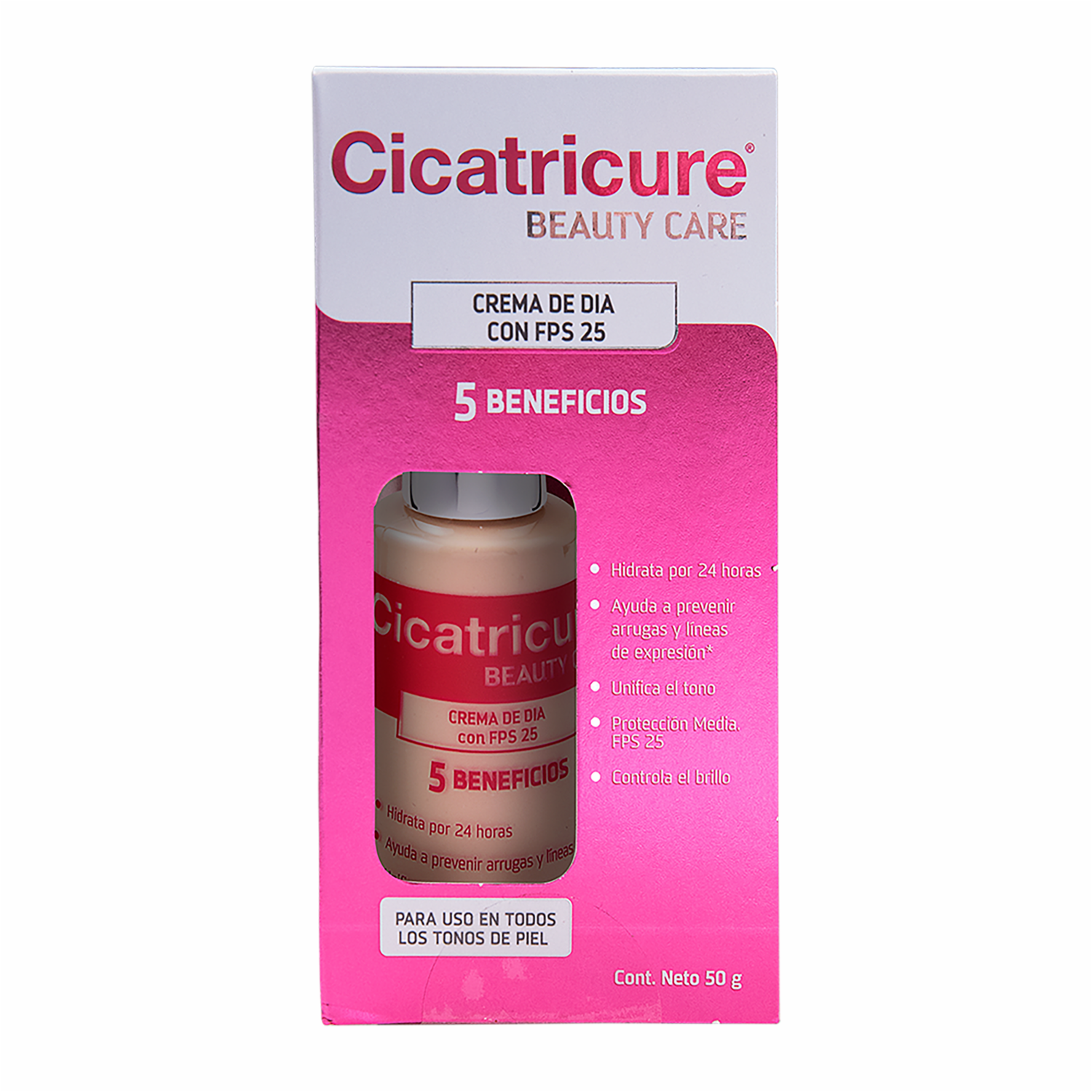 - Cicatricure Beauty Care es una crema de día con una exclusiva fórmula que reúne los cuidados que la piel necesita en 1 solo paso. Su exclusiva fórmula con péptidos y partículas de Mica, hidrata por 24 horas, iguala el tono de la piel, ayuda a prevenir líneas de expresión controla el brillo y protege de los rayos del sol (FPS 25)