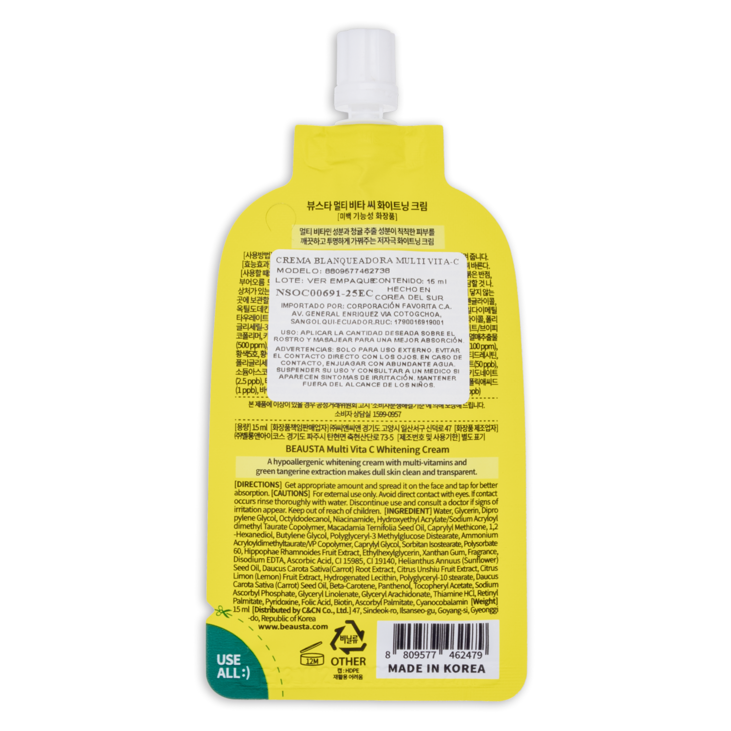 Crema Facial Blanqueadora Con Vitamina C Sachet BEAUSTA 15 Ml