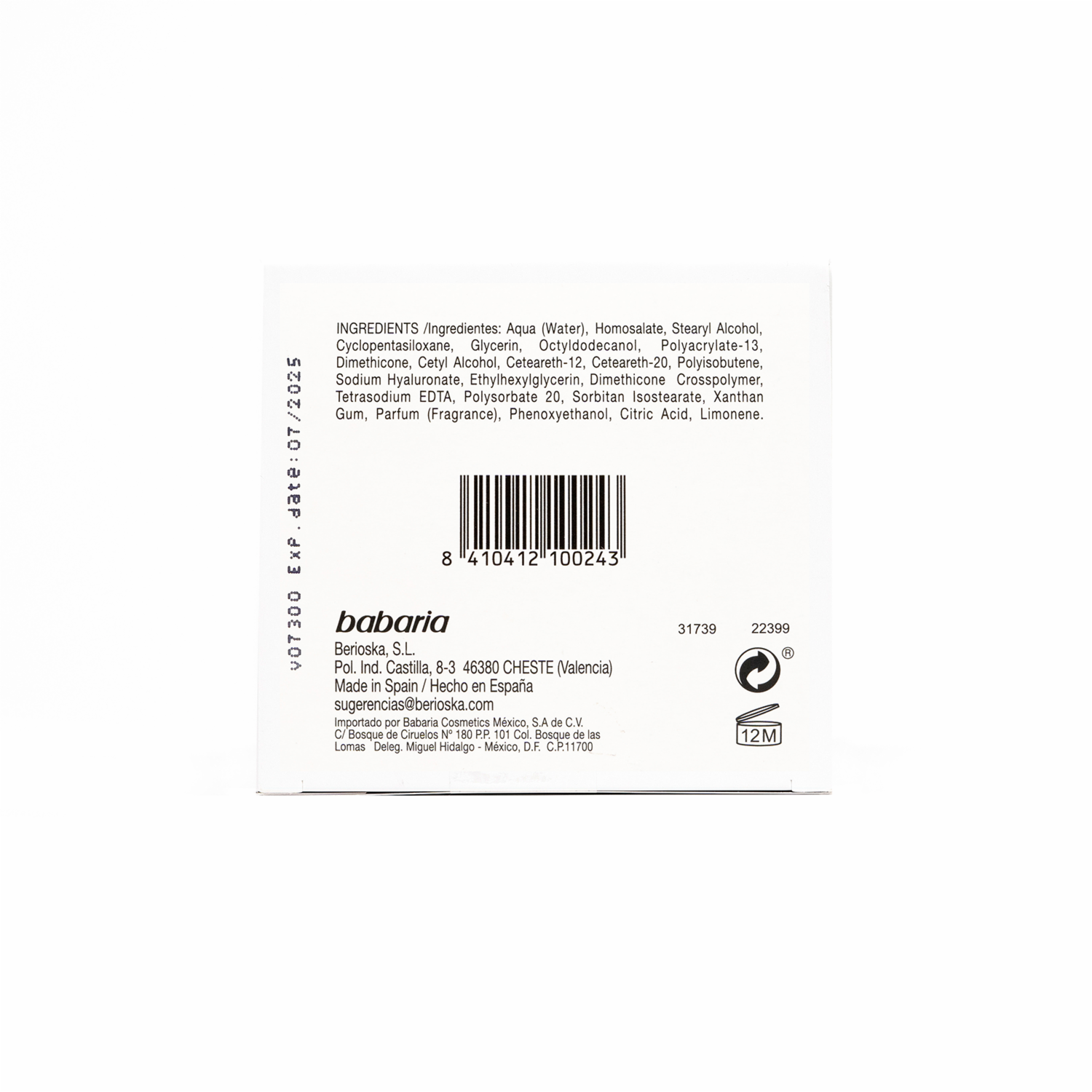 Crema Facial Con Ácido Hialurónico Día Y Noche BABARIA 50 Ml