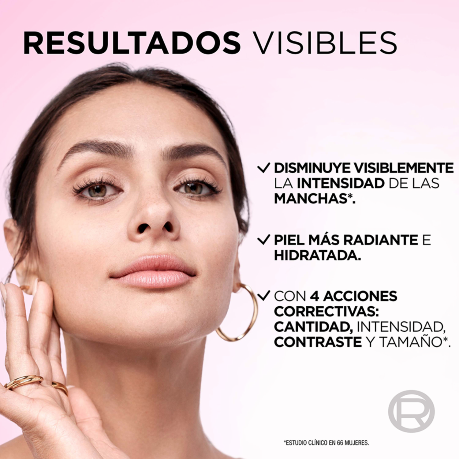 • - En 1 noche: piel más radiante*. En 7 noches: disminuye visiblemente la intensidad de las manchas. En 14 noches: Textura y tono más uniforme actúa en las manchas con 4 acciones correctivas sobre: cantidad, intensidad, contraste y tamaño*
