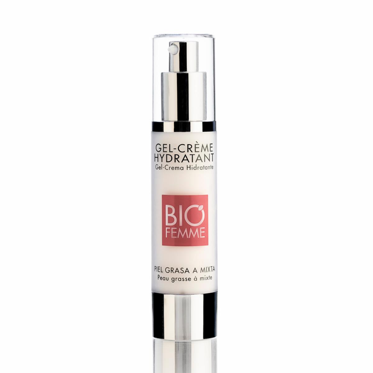 - BioFemme® Gel Crème Hydratante proporciona una sensación de frescura e hidratación inmediata y duradera. Su acabo sedoso mantiene la piel matificada y libre de grasa durante el día