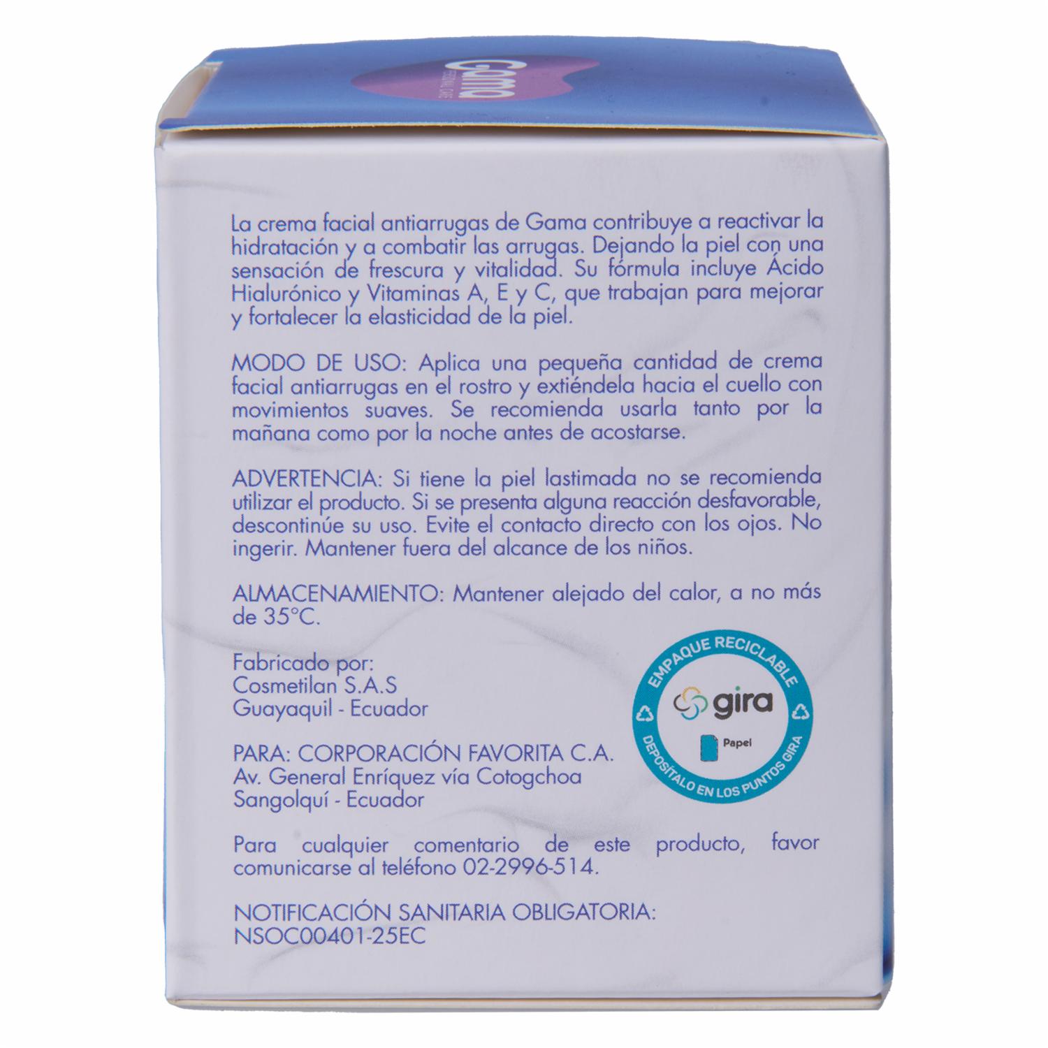 consultando preciosCrema Facial Hidratante Antiarrugas Firmeza Y Elasticidad De Rápida Absorción Para Día Y Noche GAMA 50 Ml – GAMA. Disponible en nuestros locales. Precio y stock pueden variar según la tienda.