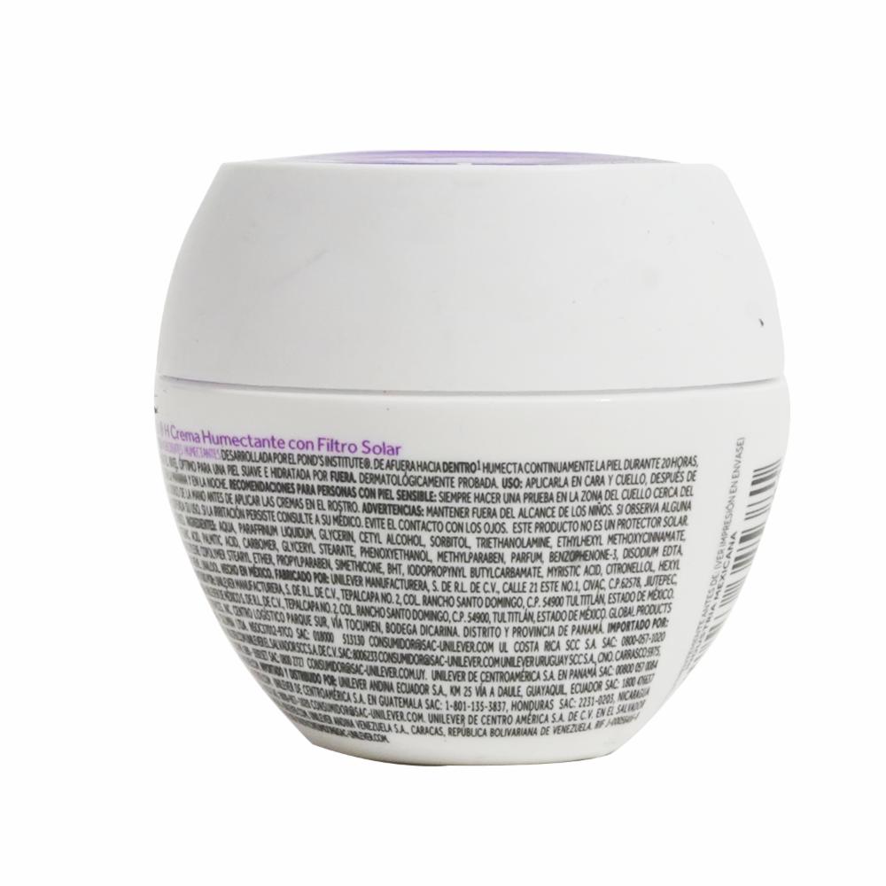 • La crema humectante Pond´s H con filtro solar, humecta continuamente la piel durante 20 horas y lo hace desde afuera hacia dentro, manteniendo el nivel óptimo para una piel suave e hidratada por fuera