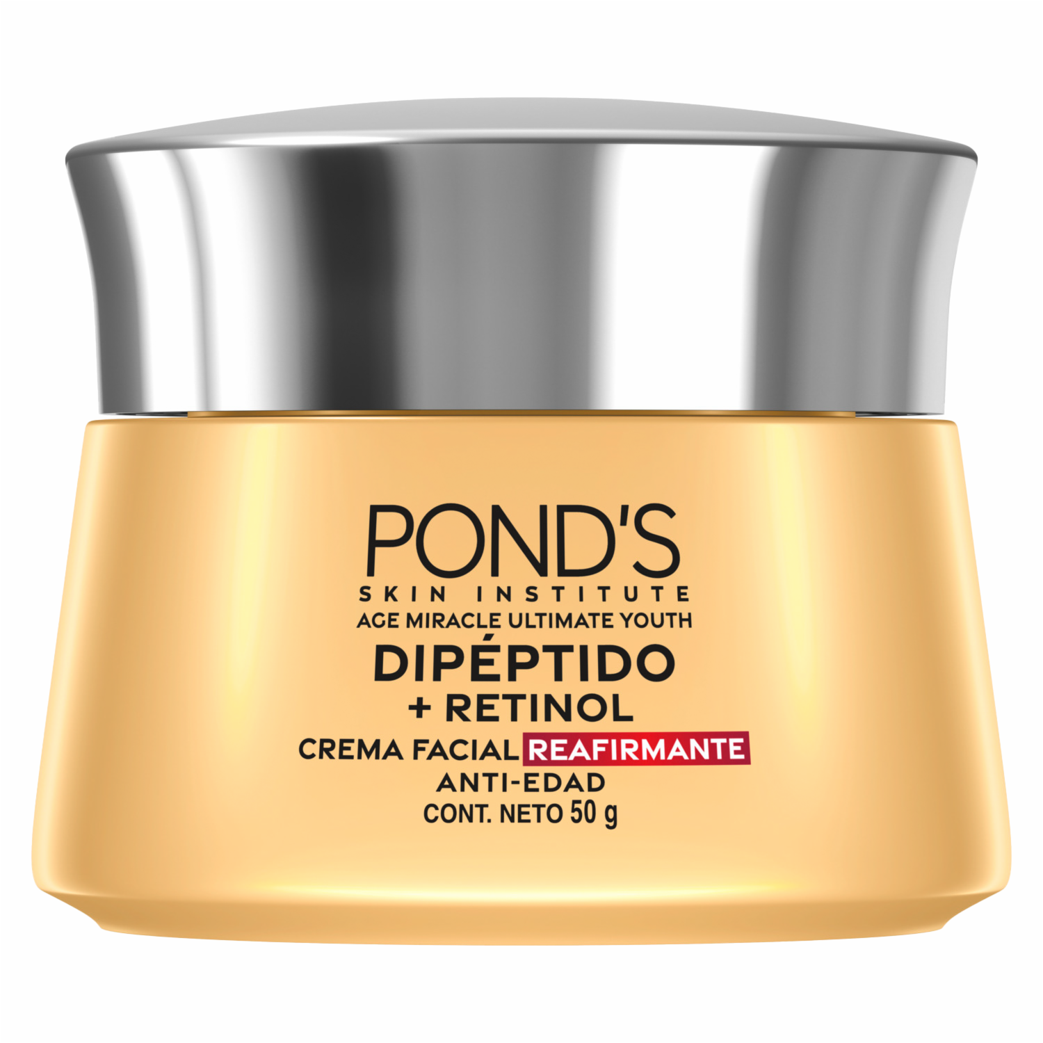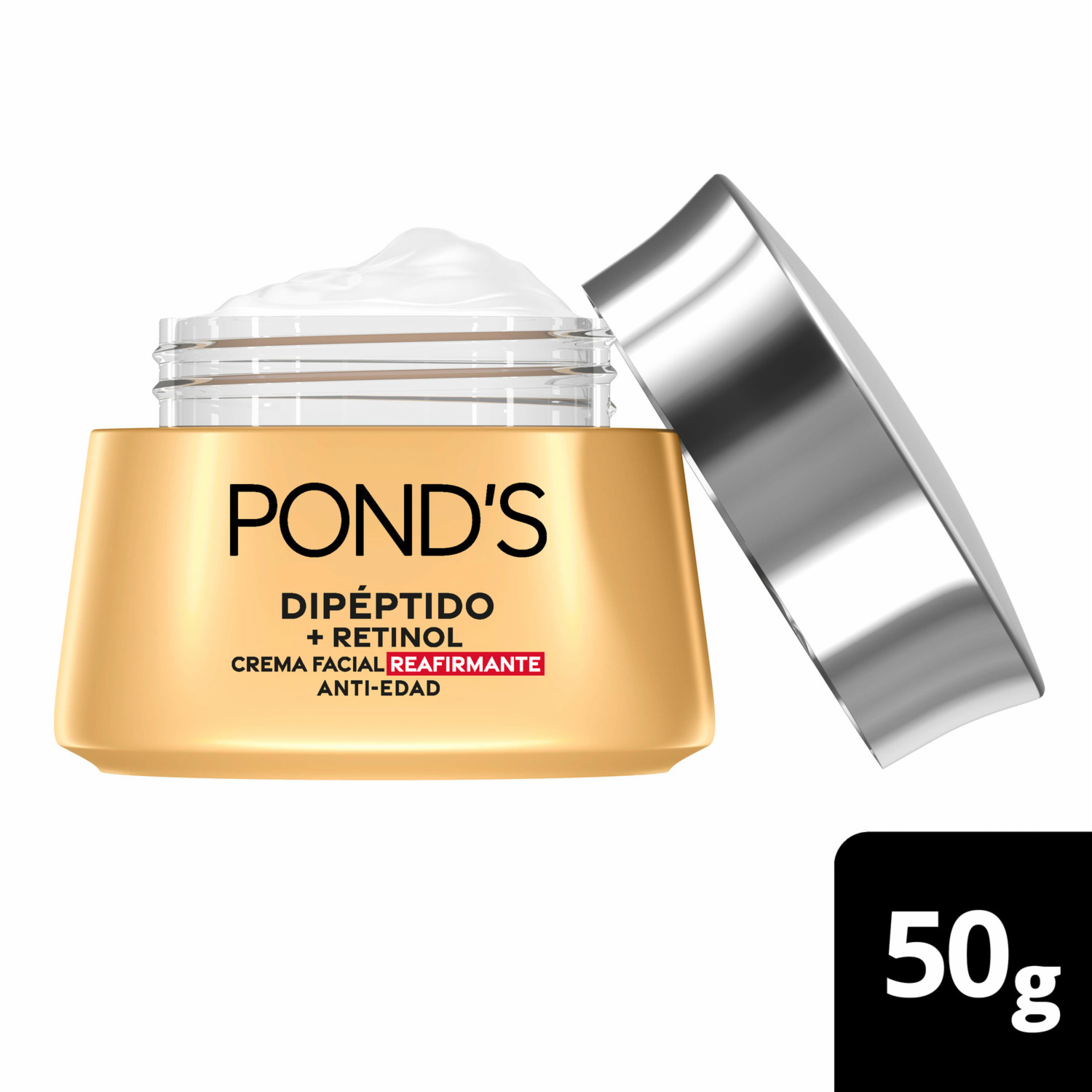 - Crema facial Reafirmante anti-edad Dipéptido + Retinol de PONDS en presentación de 50G. Ideal para uso diario, elaborado con ingredientes seleccionados que brindan beneficios visibles desde el primer uso