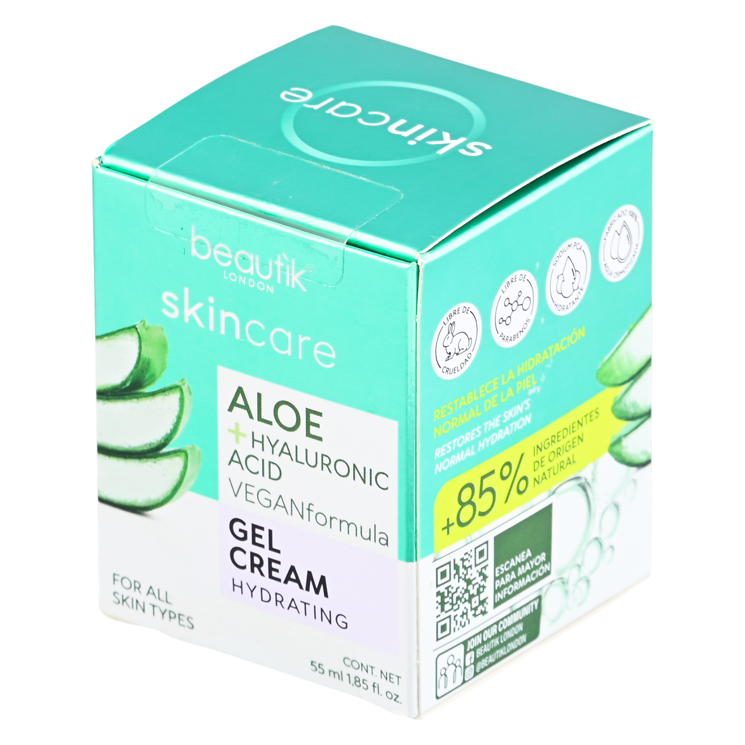 - Crema hidratante aloe ácido hialurónico nutre e hidrata la piel dejándola suave y flexible. Su fórmula ligera ayuda a mantener la hidratación durante todo el día. Perfecta para el cuidado facial diario y realzar la belleza natural.