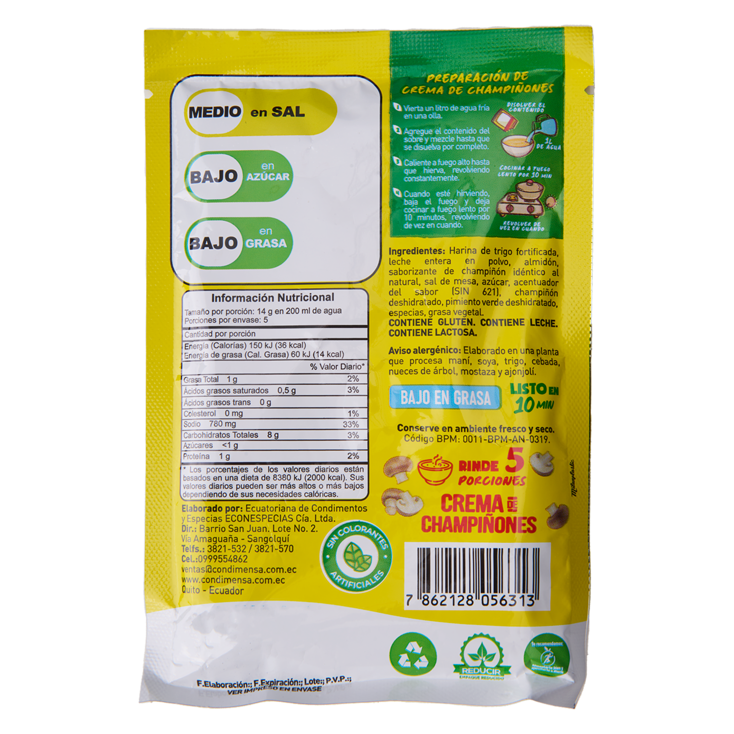 consultando preciosCrema Instantánea De Champiñones CONDIMENSA 70 G – CONDIMENSA. Disponible en nuestros locales. Precio y stock pueden variar según la tienda.