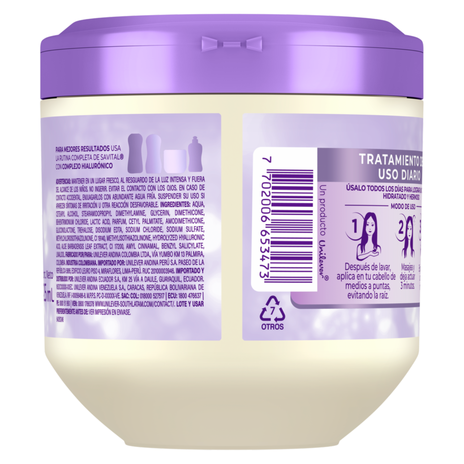 Crema Tratamiento Capilar Con Complejo Hialurónico Y Sábila Hidratación Intensa SAVITAL 425 Ml