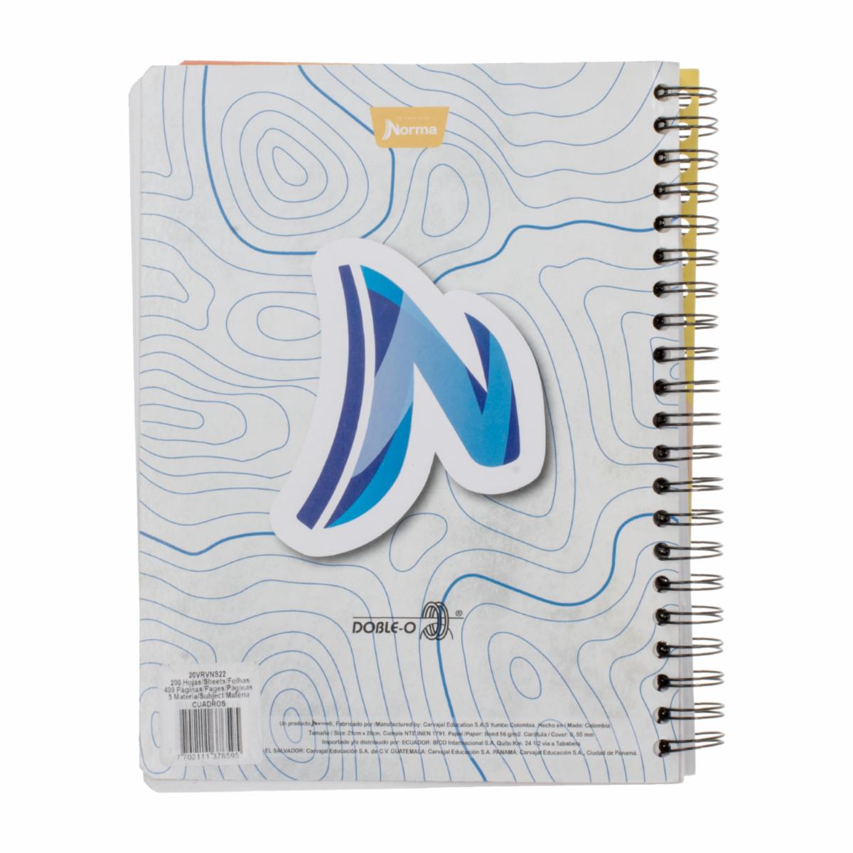 Cuaderno Universitario Cuadros 5 Materias NORMA 200 Hojas – NORMA. Disponible en nuestros locales. Precio y stock pueden variar según la tienda.