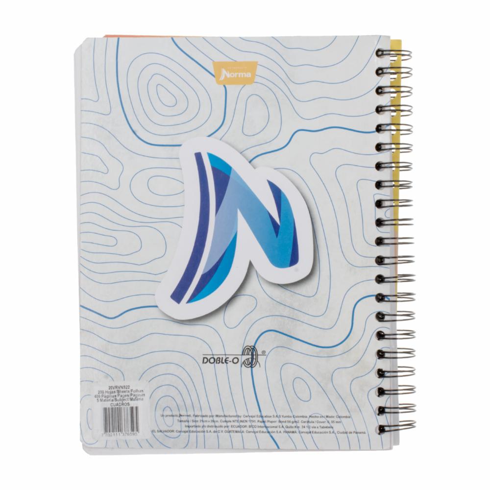 Cuaderno Universitario Cuadros 5 Materias NORMA 200 Hojas