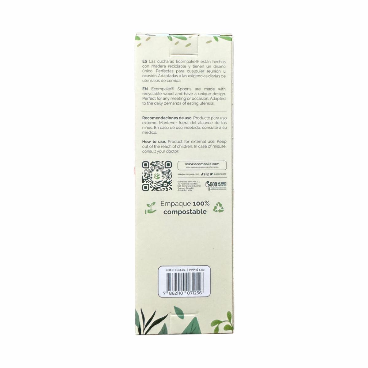 - Cuchara ECOMPAKE de madera resistentes, 100 % naturales sin procesos artificiales ni aditivos, diseño único, 100 % compostables y 100% biodegradables