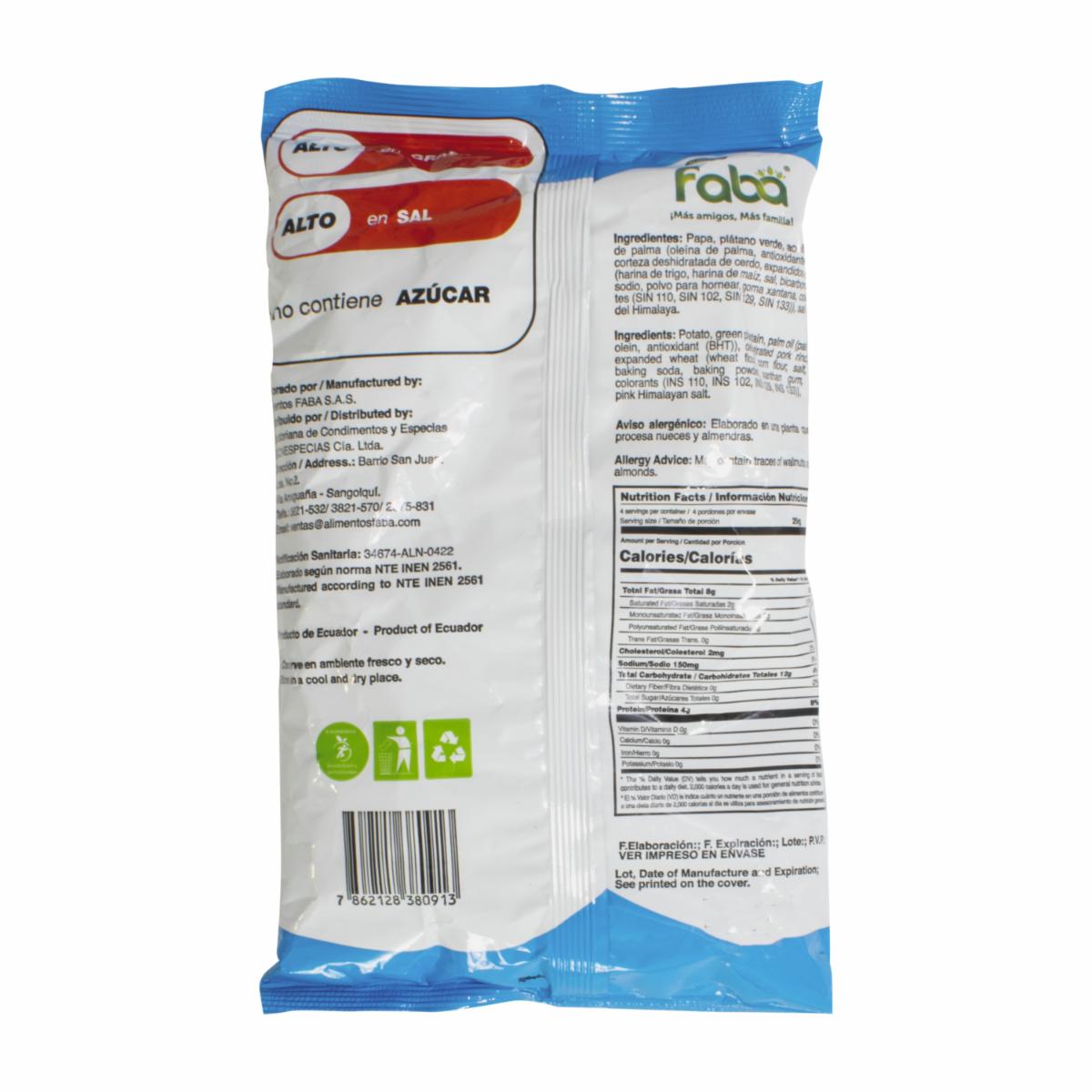 - Snack delicioso y crujiente elaborado a partir de piel de cerdo que ha sido cocida y frita hasta obtener una textura crujiente y dorada. FABA es una marca reconocida por su calidad y sabor en el mercado de snacks