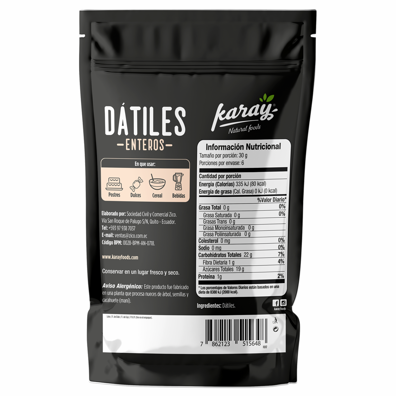 consultando preciosDátiles Secos KARAY 180 G – KARAY. Disponible en nuestros locales. Precio y stock pueden variar según la tienda.