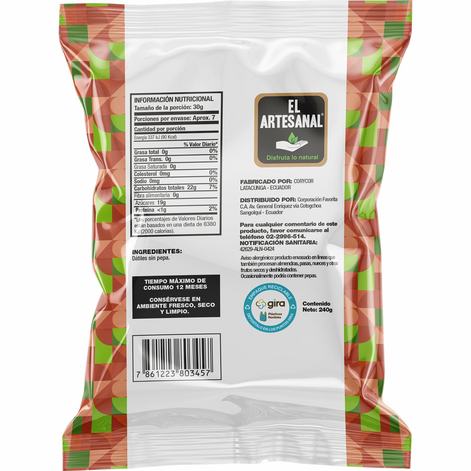 Dátiles Sin Pepa 100% Natural EL ARTESANAL 240G – EL ARTESANAL. Disponible en nuestros locales. Precio y stock pueden variar según la tienda.