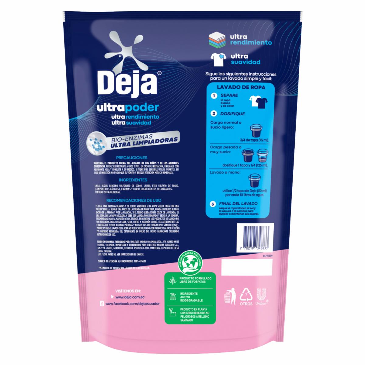 - Disfruta de la frescura de la primavera con el Detergente Líquido Suave Brisa Primavera DEJA. Su fórmula avanzada limpia profundamente tus prendas, dejándolas suaves y con un aroma duradero. Ideal para todo tipo de ropa, incluso las más delicadas. Presentación de 1800 ml