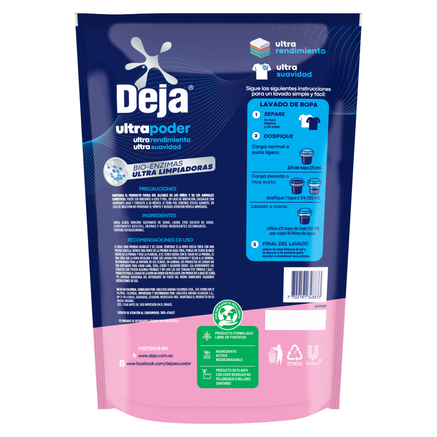 Detergente Liquido Suave Brisa Primavera DEJA 1800 Ml – DEJA. Disponible en nuestros locales. Precio y stock pueden variar según la tienda.