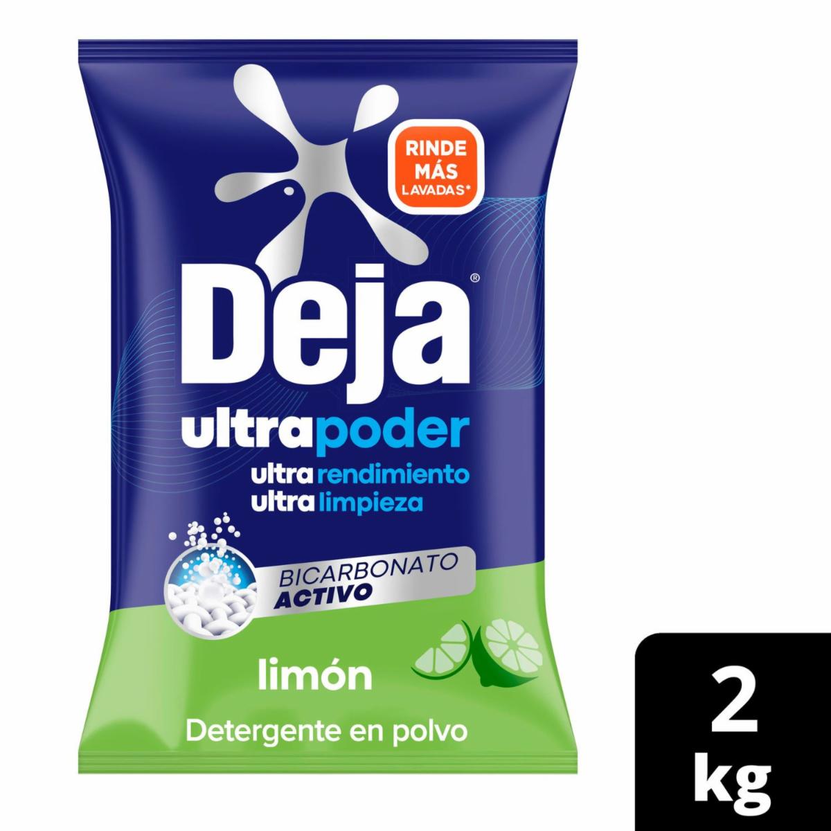 - Detergente en polvo Limón con moléculas de limpieza profunda + bicarbonato, limpieza suave y frescura cítrica en cada lavado. Elimina manchas y protege tus prendas. Con 2000 gramos de eficacia y aroma revitalizante. ¡Compra ahora y vive la experiencia DEJA en tu ropa!