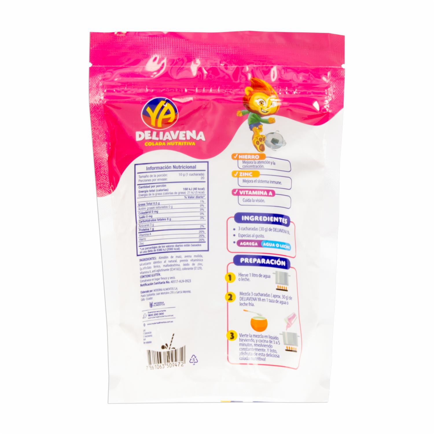 - El Deliavena de YA está elaborado con avena de la más alta calidad, cuidadosamente molida para obtener una textura suave y cremosa