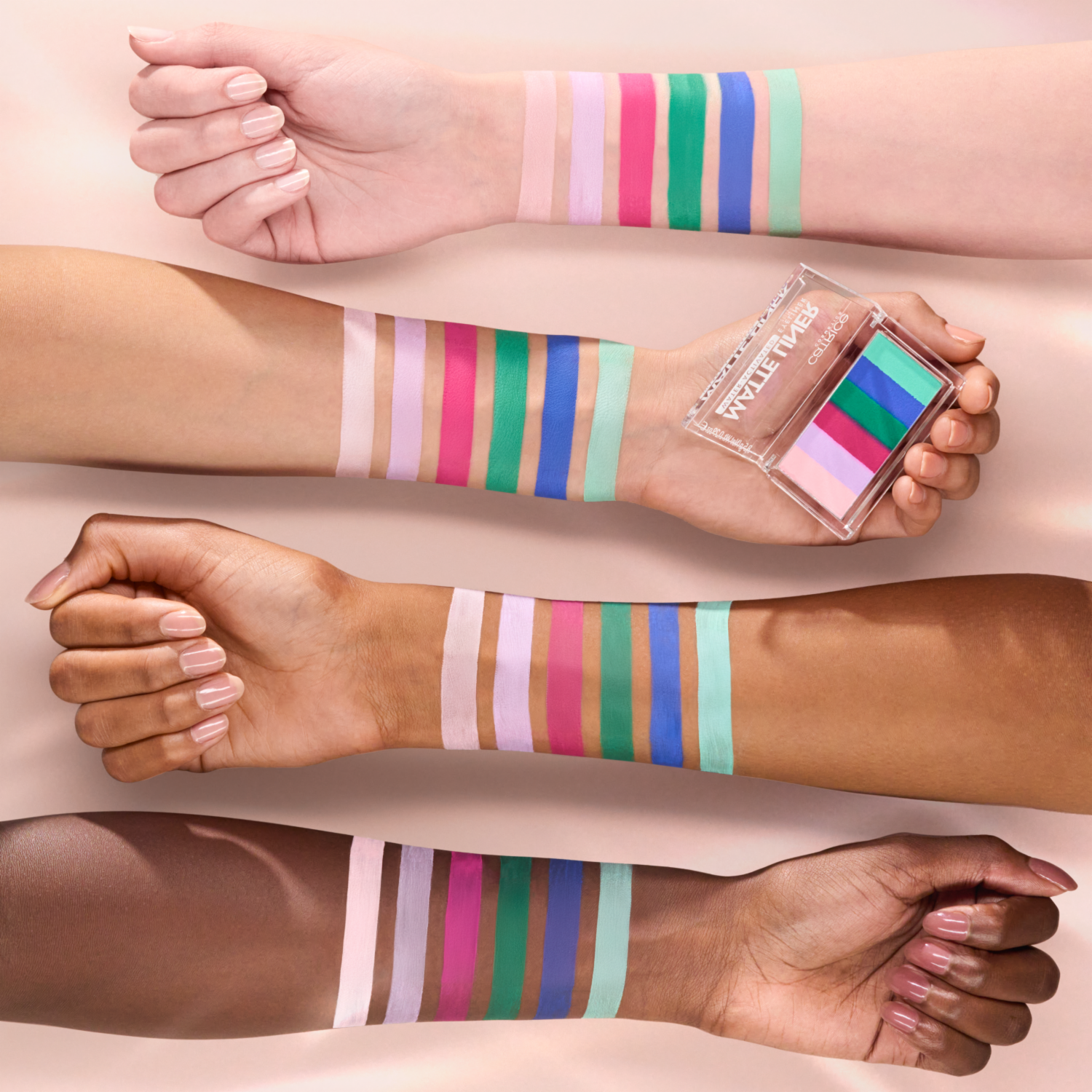 Canaliza a tu artista interior con el eyeliner mate en pastilla de Catrice. Esta paleta presenta seis tonos vibrantes que se activan con el agua con un acabado mate: rosa nude, lila suave, magenta brillante, verde intenso, azul menta pastel y ultramarino. Su intensa pigmentación y su resistencia a los roces te garantiza un look atrevido durante todo el día. Para un estilo único y personalizado, mezcla los tonos para crear tonalidades personalizadas
