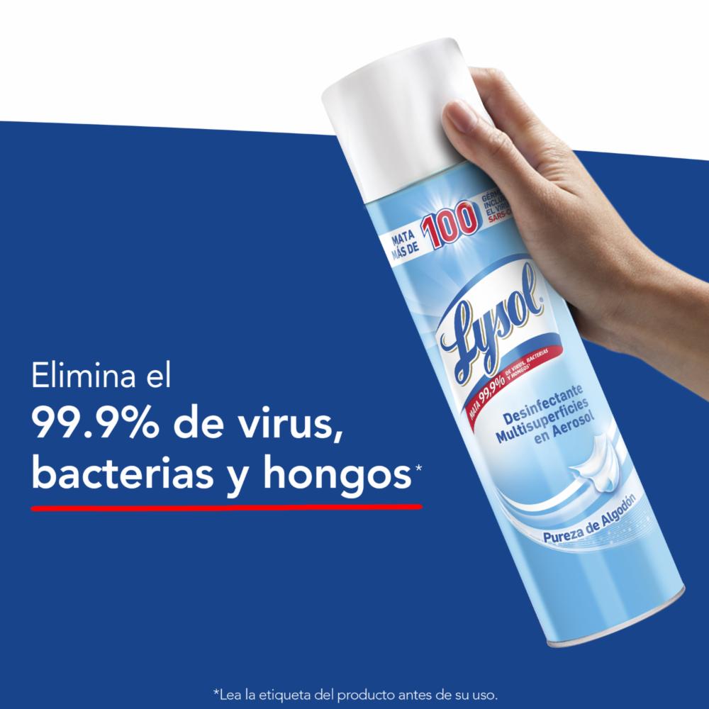 Lysol Aerosol Desinfectante Crisp Linen Elimina El 99,9% De Virus, Bacterias Y Hongos De Diferentes Superficies. Su Potente Fórmula Es Eficaz Contra Más De 100 Tipos De Gérmenes Causantes De Enfermedades Incluyendo El Virus Sars-cov-2 Causante Del Covid-19. Desinfecta Para Proteger