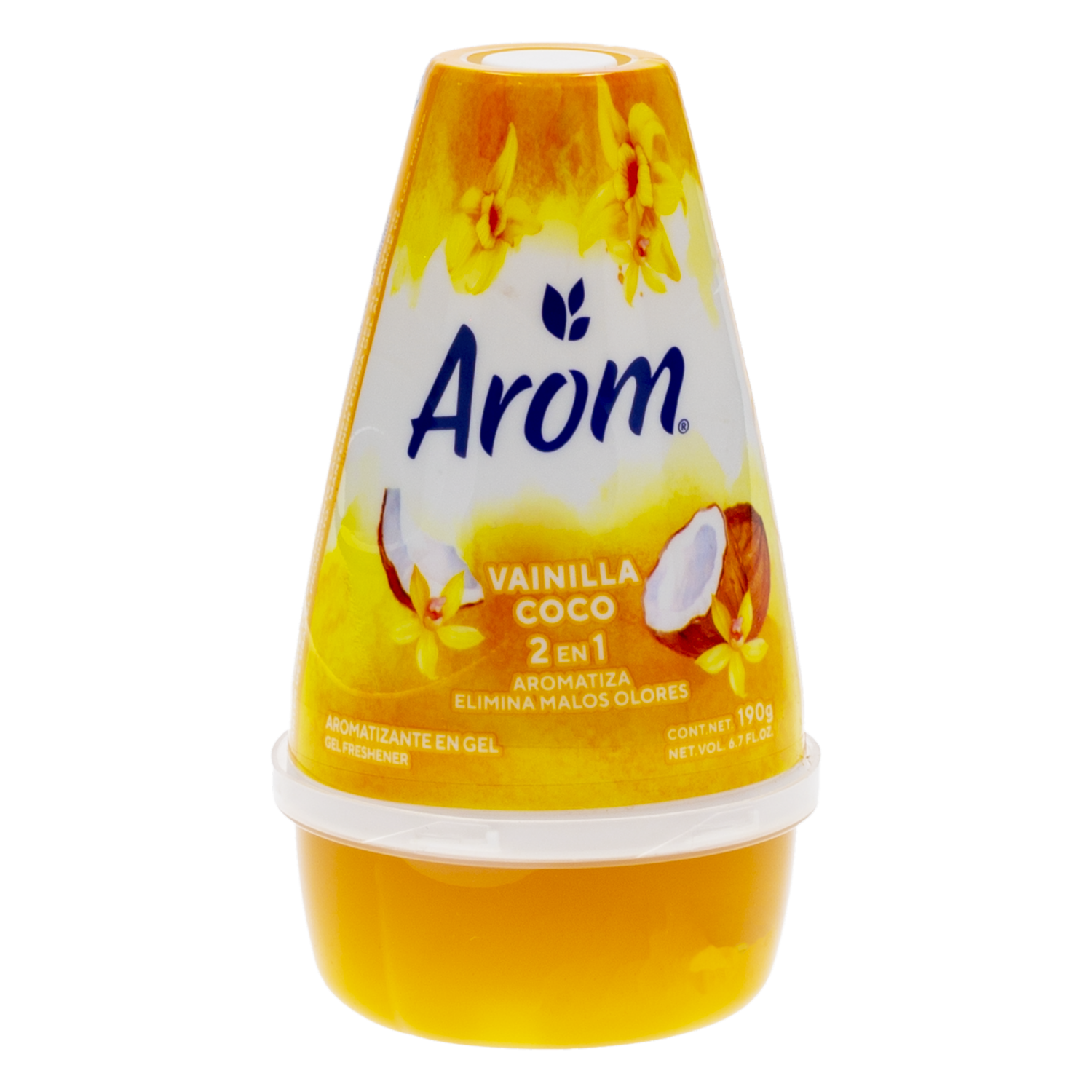 Desodorante Ambiental Tipo Cono En Gel Esencia Vainilla Coco AROM 190 G – AROM. Disponible en nuestros locales. Precio y stock pueden variar según la tienda.