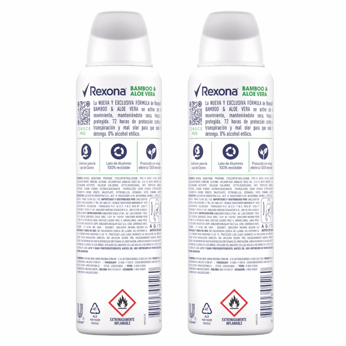 Desodorante En Aerosol Bamboo Y Aloe Vera REXONA 2 X 150 Ml