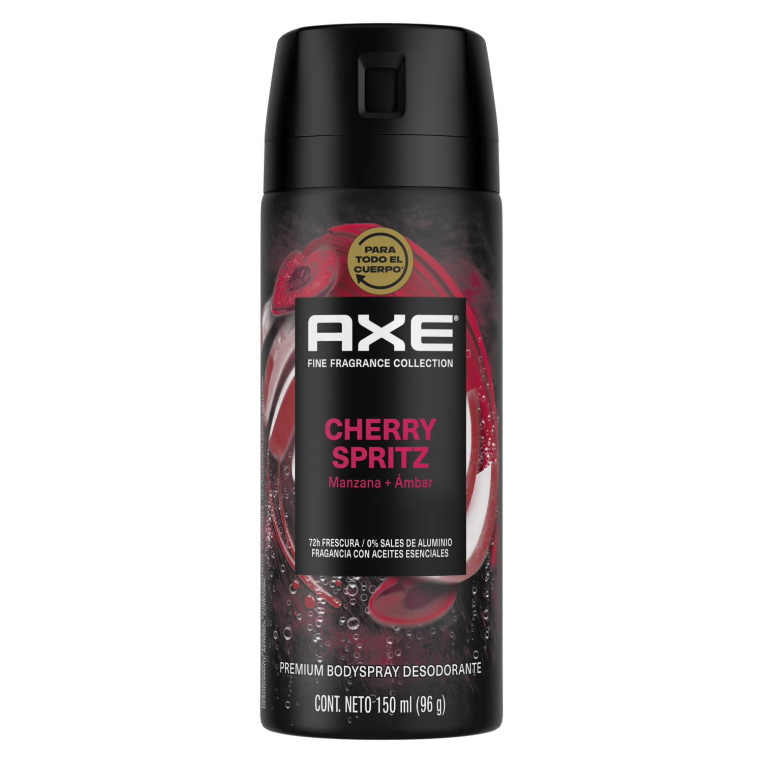 - Desodorante en aerosol AXE Cherry Spritz de 150 ml. Fragancia intensa y fresca con notas frutales, ideal para mantenerte protegido y perfumado todo el día