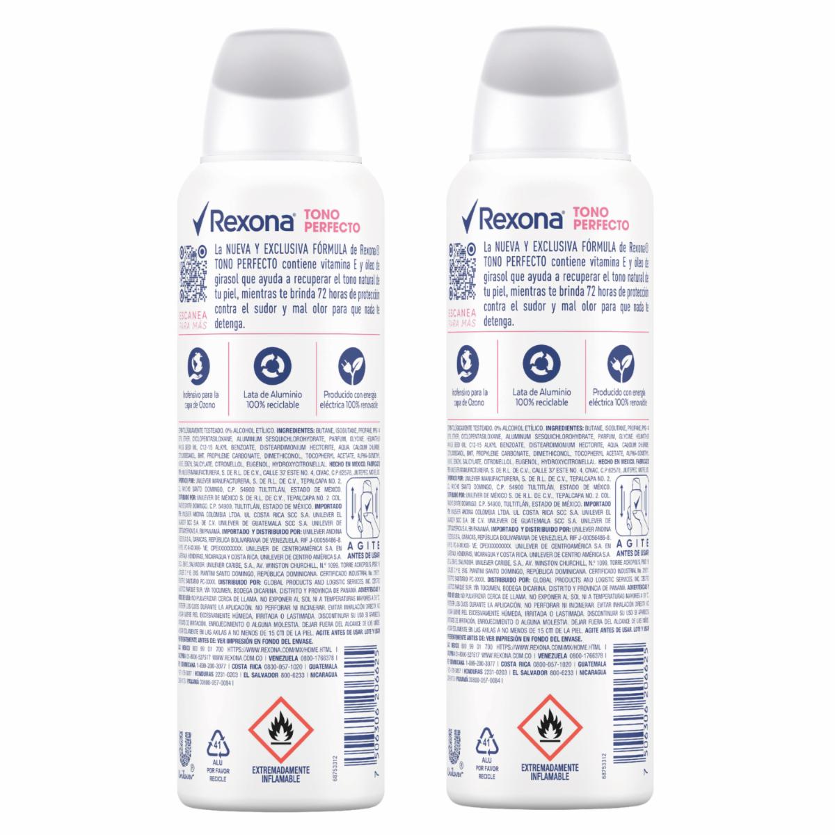 Desodorante En Aerosol Para Dama Tono Perfecto REXONA 2 X 150 Ml
