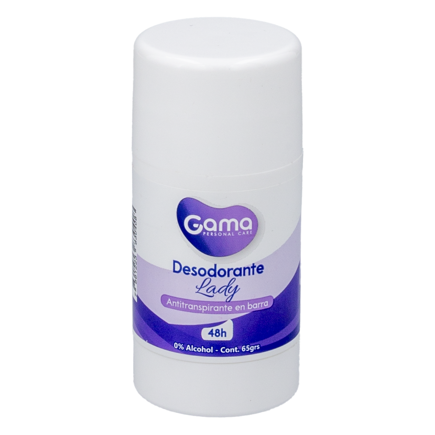 - Cuida tus días con confianza gracias a este desodorante en barra de GAMA, diseñado especialmente para mujer y con efecto antitranspirante que ayuda a mantener la frescura y la comodidad. Su presentación de 65?g es perfecta para llevar contigo o para reemplazo frecuente, y su fórmula busca protegerte del sudor y del mal olor sin complicaciones. Ideal para tu rutina diaria, desde el trabajo hasta el fin de semana